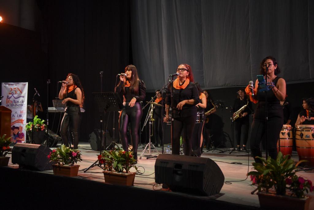 Xalapa, Ver.- Con el propósito de promover los derechos de las mujeres a una vida libre de violencia y sumarse a los 16 días de activismo que fomenta el Ayuntamiento para su erradicación, la Orquesta de Salsa “De Las Flores” ofreció un concierto en el auditorio de la Iniciativa Municipal de Arte y Cultura (IMAC).
