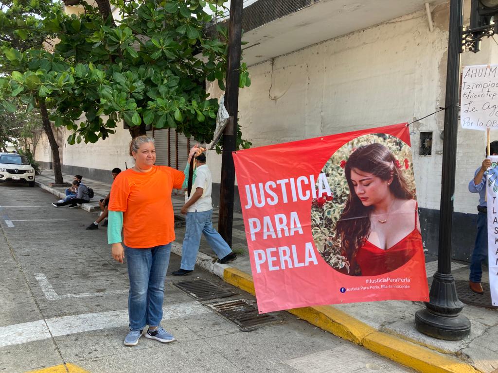 Familiares de Perla, quien es acusada de supuesta desaparición forzada acudieron a solicitar el apoyo del presidente de la República, quien visitó Veracruz.