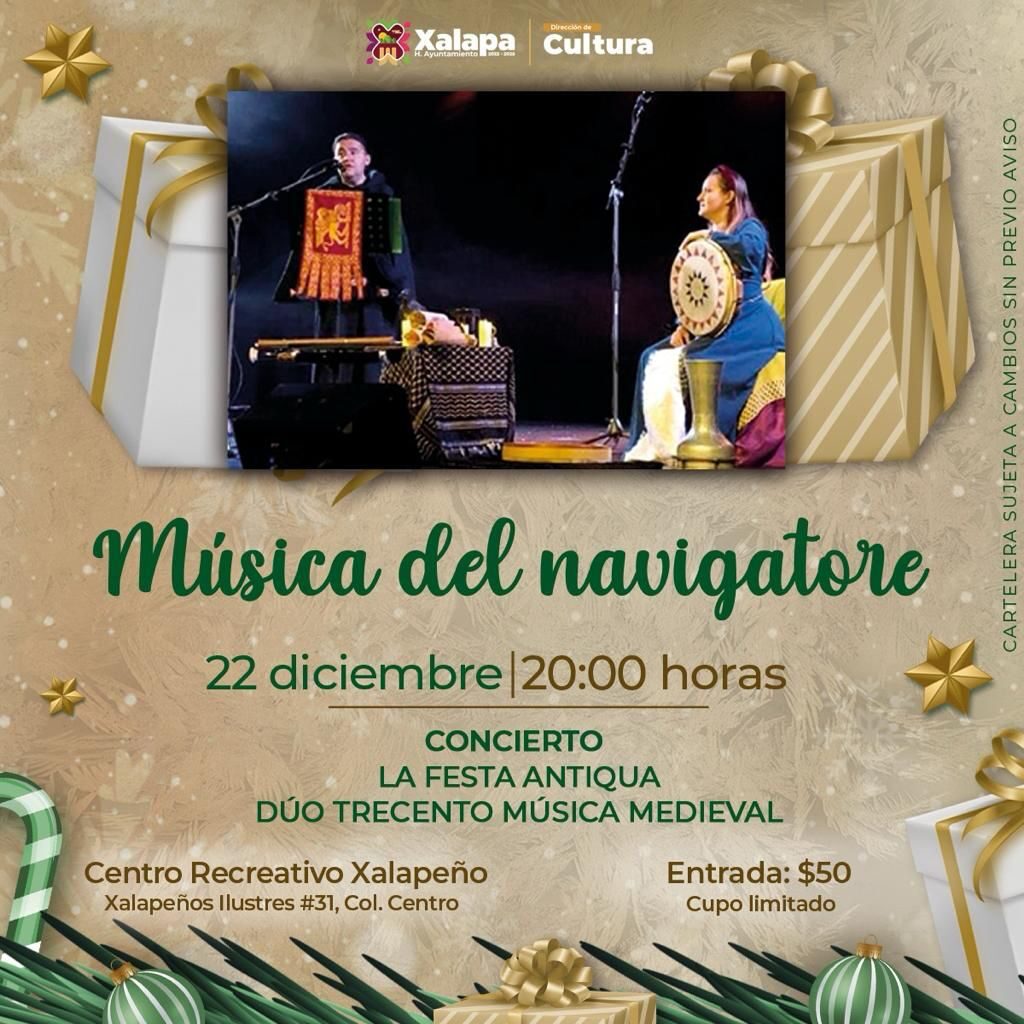 El viernes 22 de diciembre a las 9:00 horas en el CRX, Carlos Flores Estudio realizará el Taller de Video con teléfono, y a las 20:00 horas en este espacio cultural, La Festa Antiqua y Düo Trecento Música Medieval llevarán a cabo el concierto “Música del navigatore”.