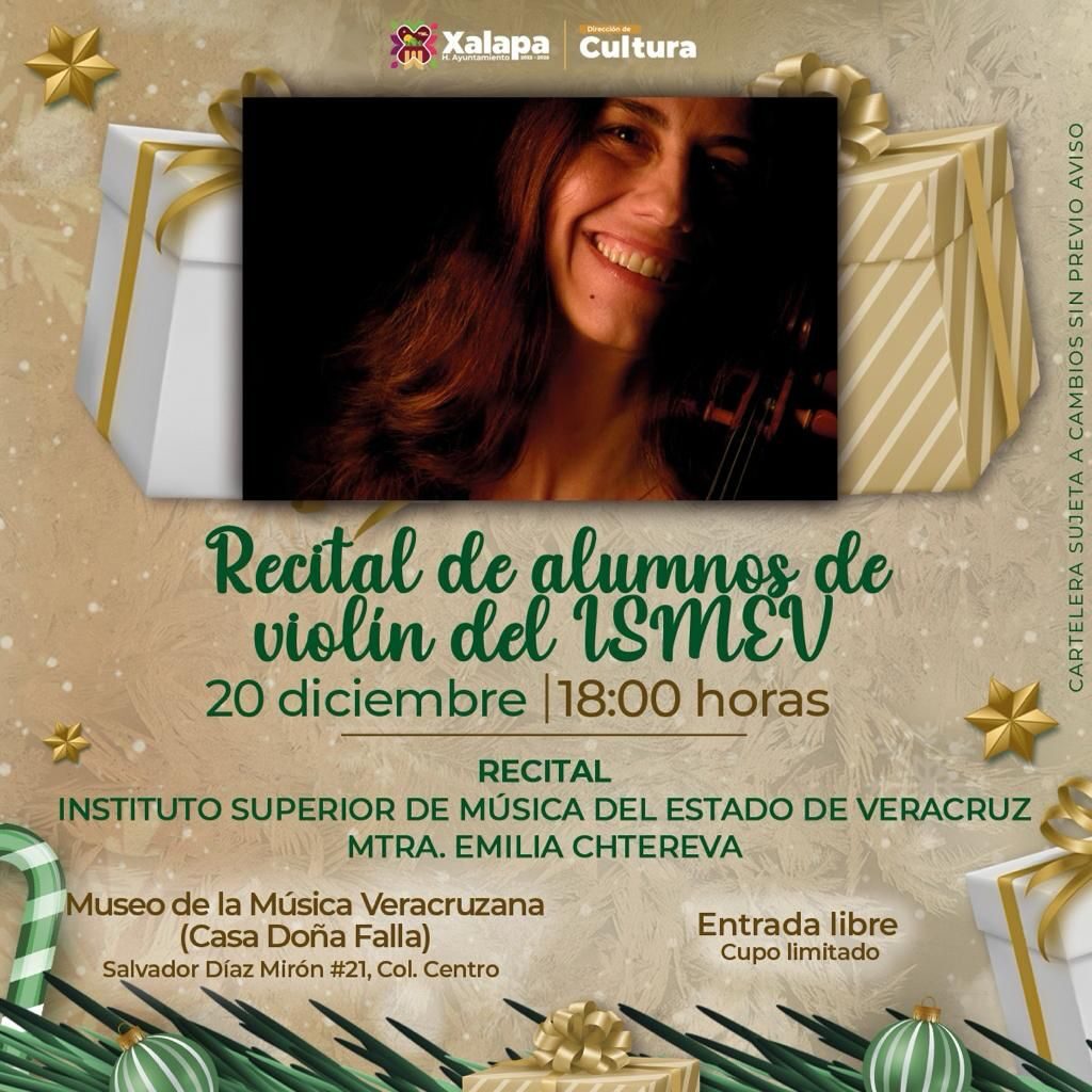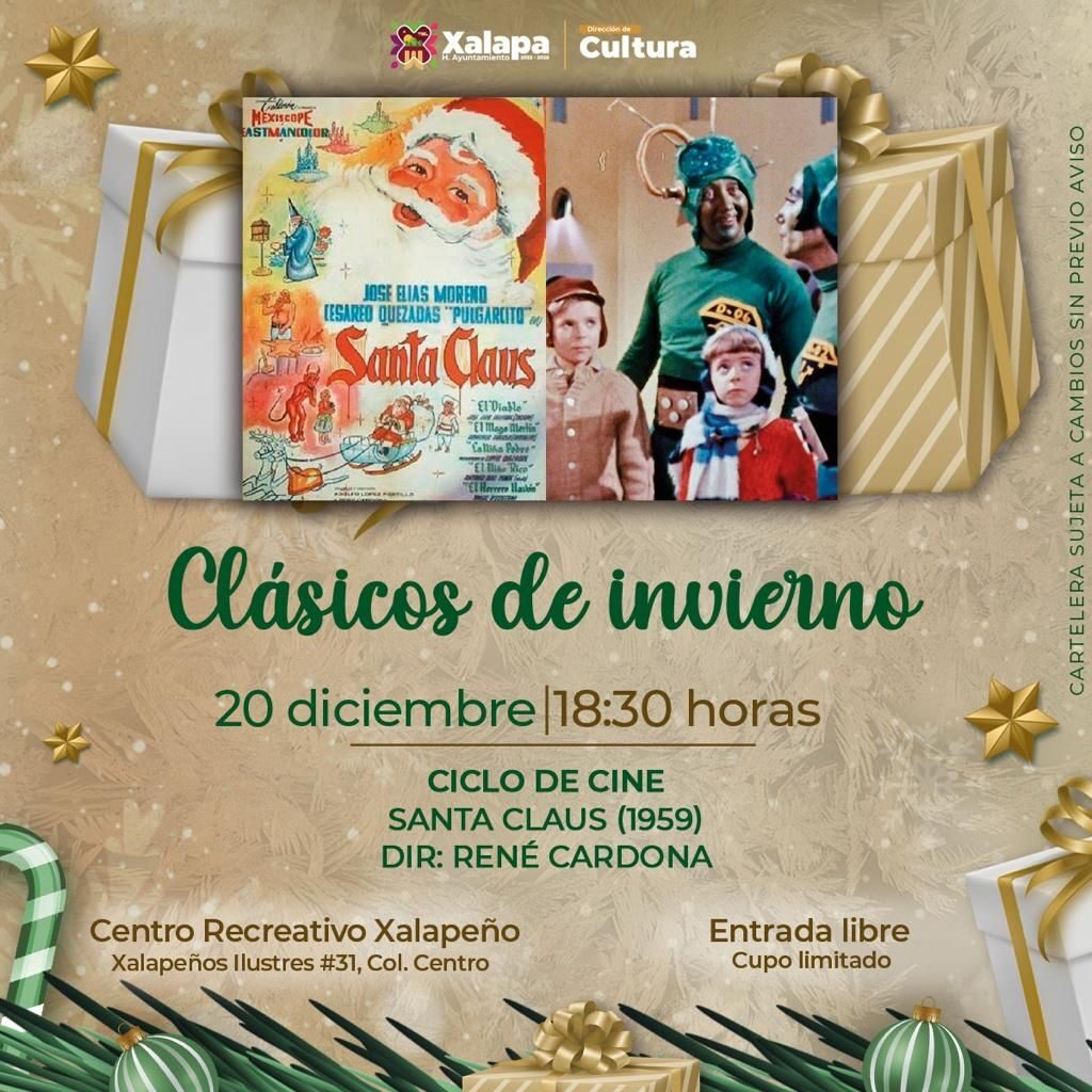 Paralelamente, los alumnos del Instituto Superior de Música del Estado de Veracruz (ISMEV), encabezarán un recital de violín en el Museo de la Música Veracruzana; y a las 18:30 horas en el CRX, se realizará el Ciclo de Cine “Clásicos de Invierno”, con la proyección de la película “Santa Claus” (1959), del director René Cardona.
