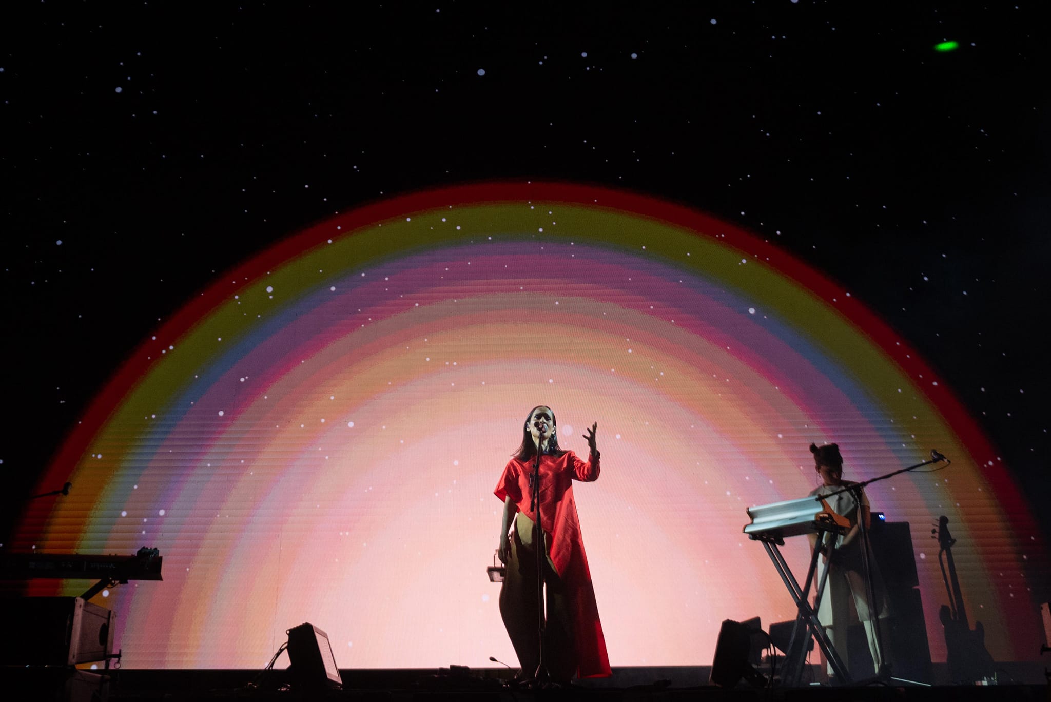 “México hermoso, qué belleza poder estar aquí, que tengamos tomado el Zócalo con música, con mujeres talentosas y hermosas, tengo el corazón así (simula una explosión con las manos) así abierto, mil gracias”, expresó la cantante después de cantar Caminar sola y Mismo amor.