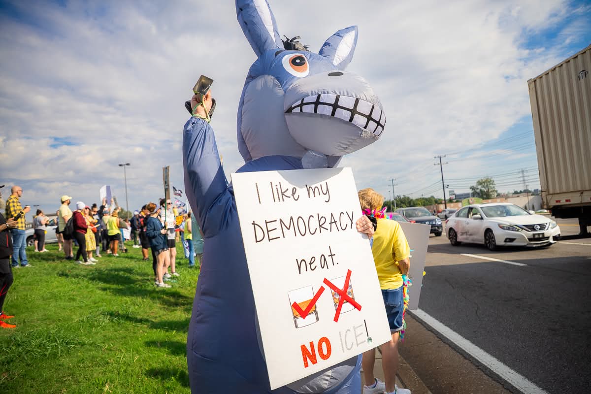 La mañana de este sábado, las manifestaciones ocurre pacíficamente y no se detectan grupos de choque, pese a que alertaban la presencia de afines a Hamas y a otros grupos en contra de las políticas del presidente Donald Trump.