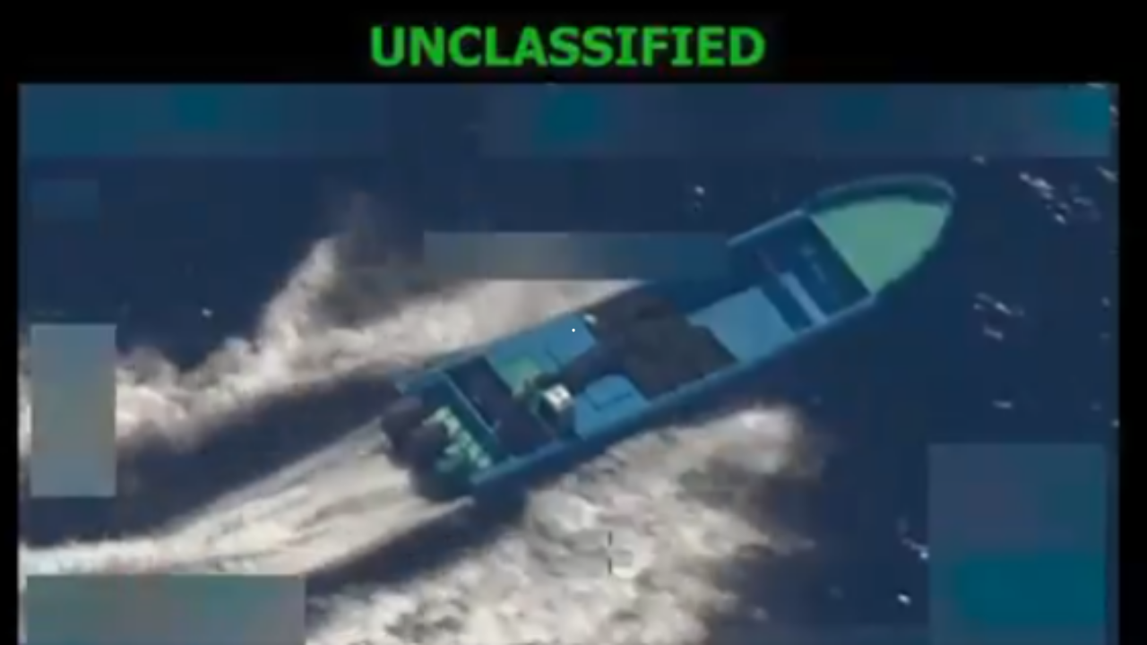 En un breve video publicado por Hegseth, se ve un pequeño bote, medio lleno de paquetes marrones, moviéndose por el agua. Varios segundos después, el bote explota y se ve flotando inmóvil en el agua en llamas.