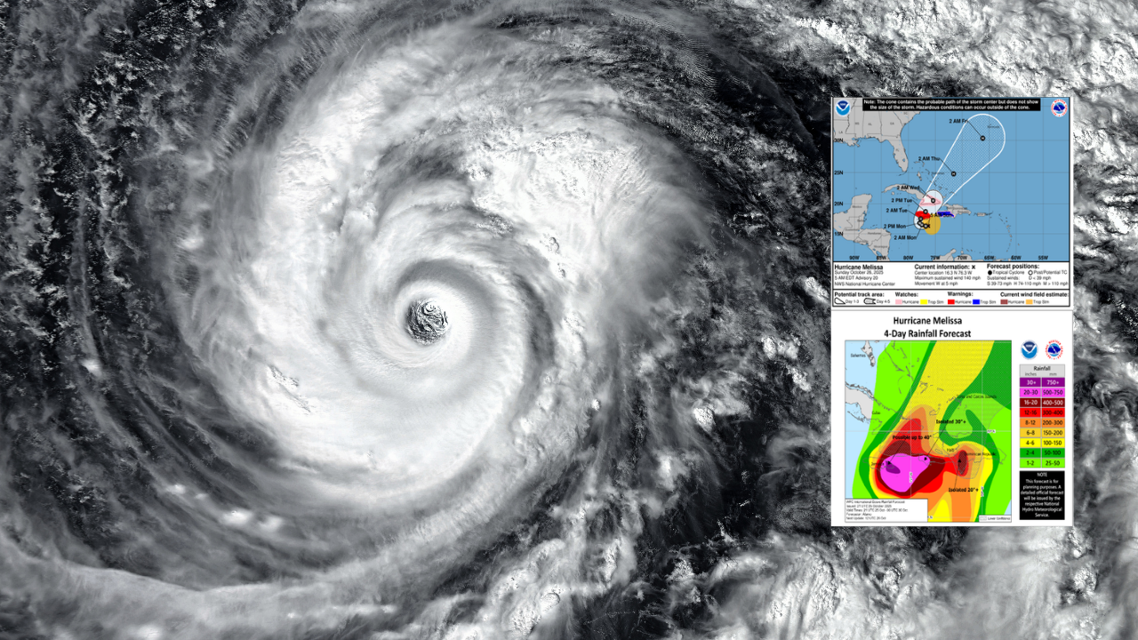 Se esperaba que Melissa dejara caer lluvias torrenciales de hasta 76 centímetros en Jamaica y el sur de La Española —la isla donde se encuentran Haití y la República Dominicana— según el centro de huracanes. Algunas áreas podrían recibir hasta 101 centímetros de lluvia.