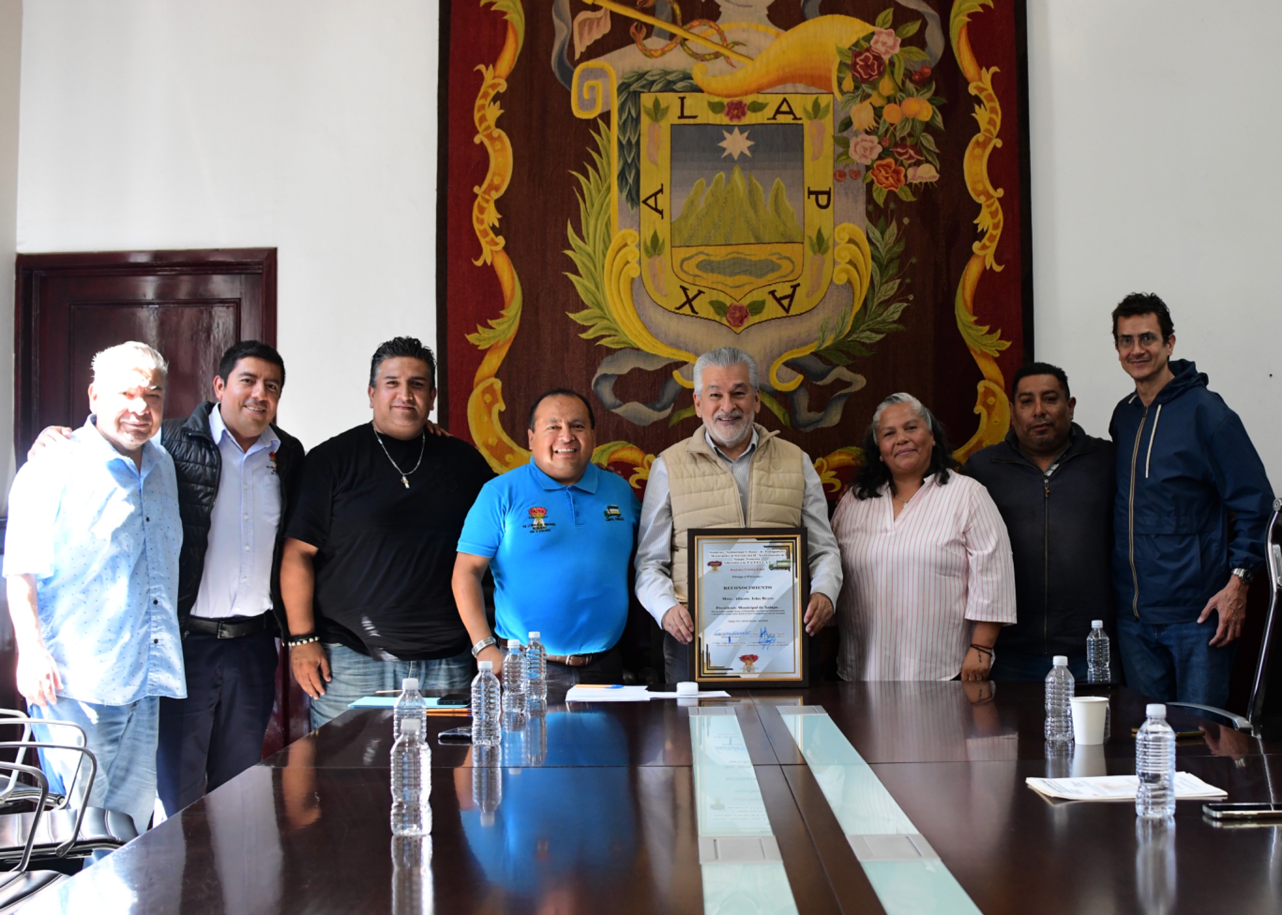 Xalapa, Ver.- Por la labor realizada en favor de la ciudadanía y el respaldo brindado para mejorar las condiciones laborales del personal al servicio del Ayuntamiento, dirigentes del Sindicato Solidaridad Urbana de Trabajadores Municipales adheridos a la FATEV-CAT, entregaron un reconocimiento al alcalde Alberto Islas Reyes.