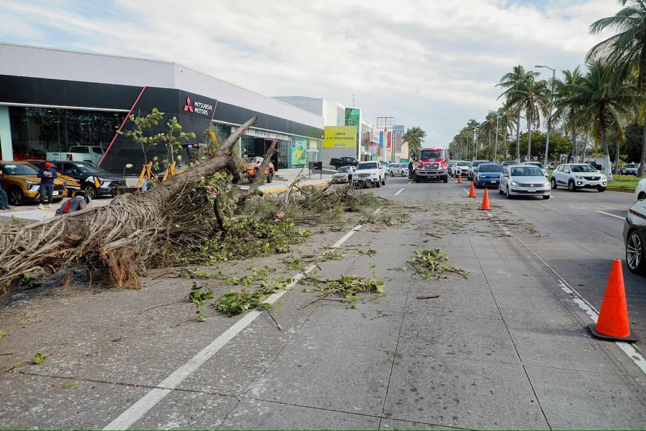 El fenómeno también provocó la caída de diez árboles y dos postes, así como la atención de reportes de cortos circuitos y daños en estructuras ligeras. Ante el incremento en la velocidad del viento y el oleaje elevado, se determinó el cierre total del bulevar Manuel Ávila Camacho en ambos sentidos en tramos específicos desde primera hora de este jueves.