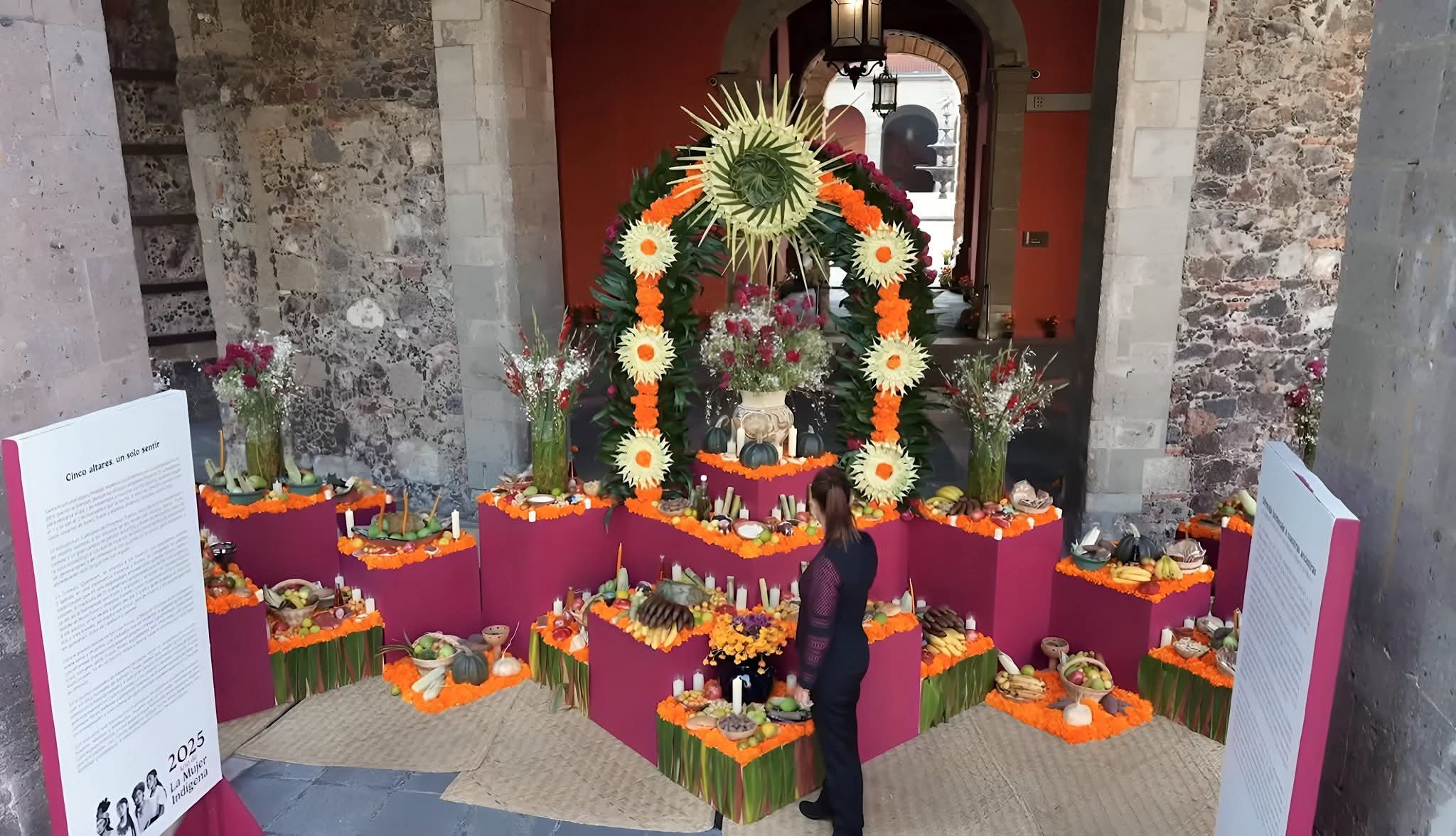 ‘Ellas siguen aquí, en la voz del viento, en el pulso de la tierra, en el eco de cada palabra de su lengua materna, en nuestra ofrenda es para ellas: por su fuerza, su sabiduría y su amor infinito. Ancestras de todas y todos los mexicanos’.