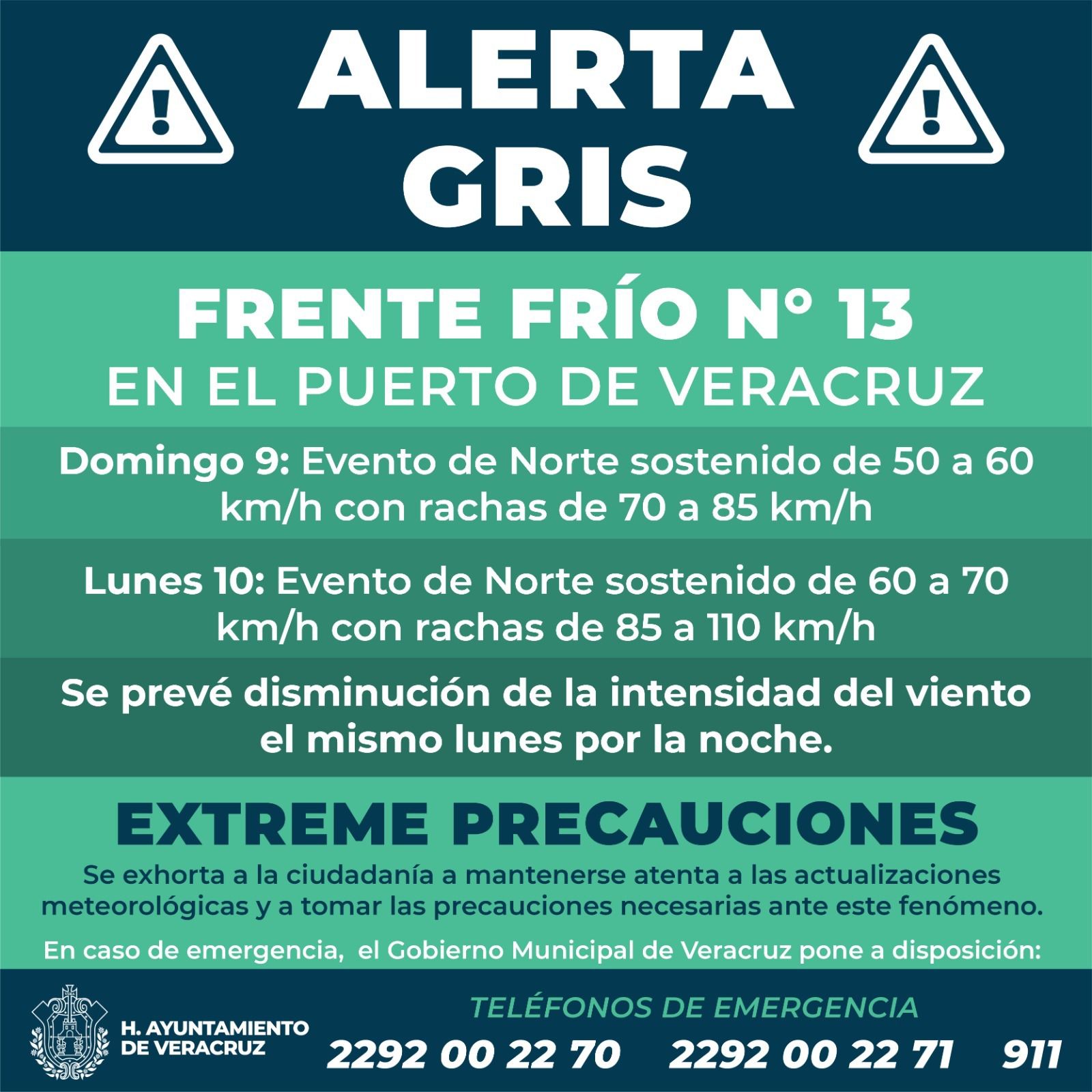 Ante cualquier situación de riesgo, se mantienen disponibles los números de emergencia: 229 200 2270, 229 200 2271 y el 911.