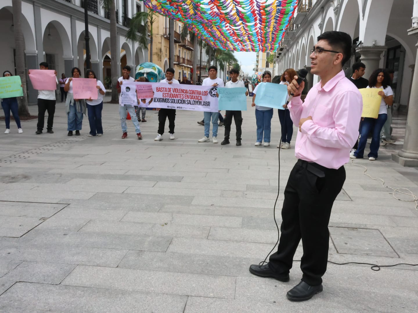 “Desde enero de este año el gobierno del gobernador Salomón Jara no ha dado una solución, ya que un albergue estudiantil en Oaxaca fue arrebatado por un grupo de porros a los estudiantes, y hasta el sol de hoy a nivel nacional estamos haciendo esta cadena humana en apoyo a los compañeros”, señaló.