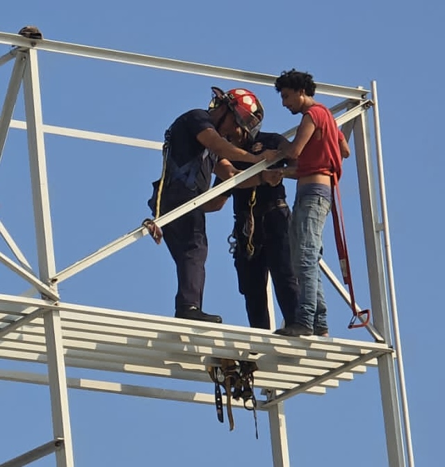 Tras varios intentos, el diálogo surtió efecto y los rescatistas lograron que el joven aceptara descender. Con ayuda de equipo especializado, lo aseguraron y lo guiaron hasta tierra firme, concluyendo el operativo sin incidentes mayores.