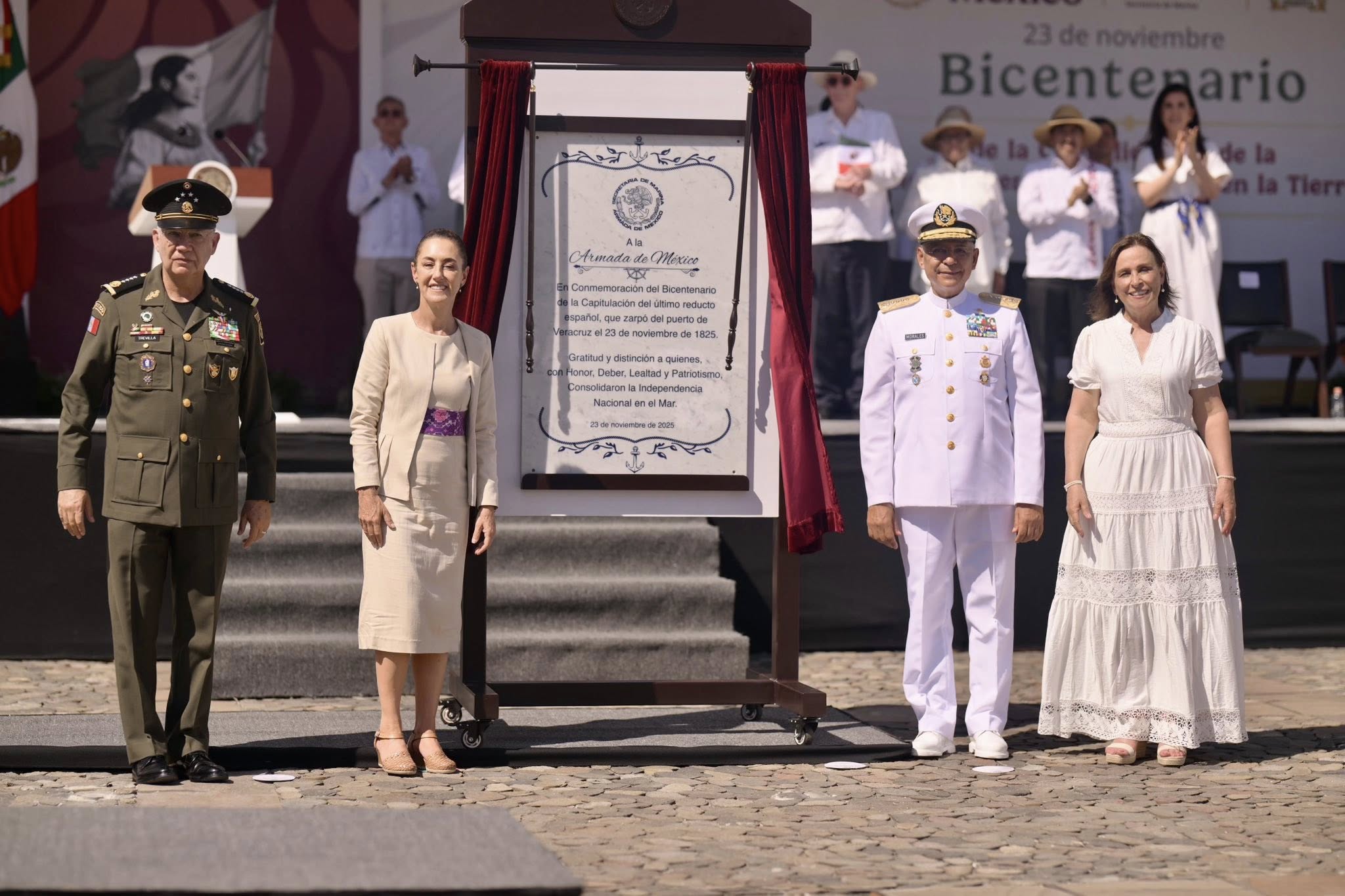 Veracruz, Ver.— La presidenta de México, Claudia Sheinbaum Pardo, encabezó este domingo en el puerto de Veracruz la ceremonia por el Bicentenario de la Independencia en la Mar, un acto protocolario realizado en la Fortaleza de San Juan de Ulúa, donde hizo un llamado a defender la soberanía nacional y reconoció la labor de la Secretaría de Marina.