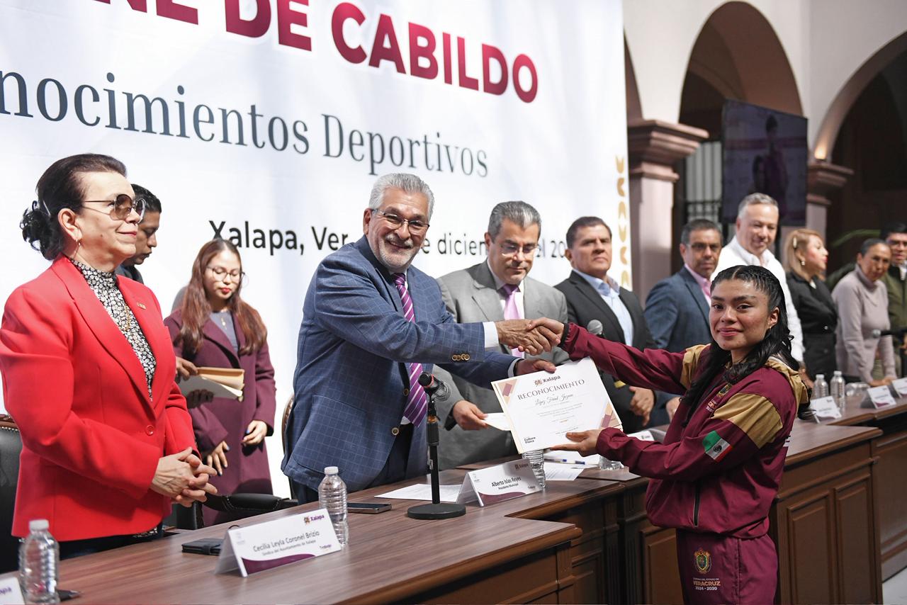 En Sesión Solemne de Cabildo, dijo que los deportistas que lograron medallas de oro, plata y bronce son un orgullo de Xalapa, por lo que este Gobierno reconoce con una bolsa de 612 mil pesos su esfuerzo, fortaleza, talento y competitividad, lo que los hace un ejemplo para las y los xalapeños.