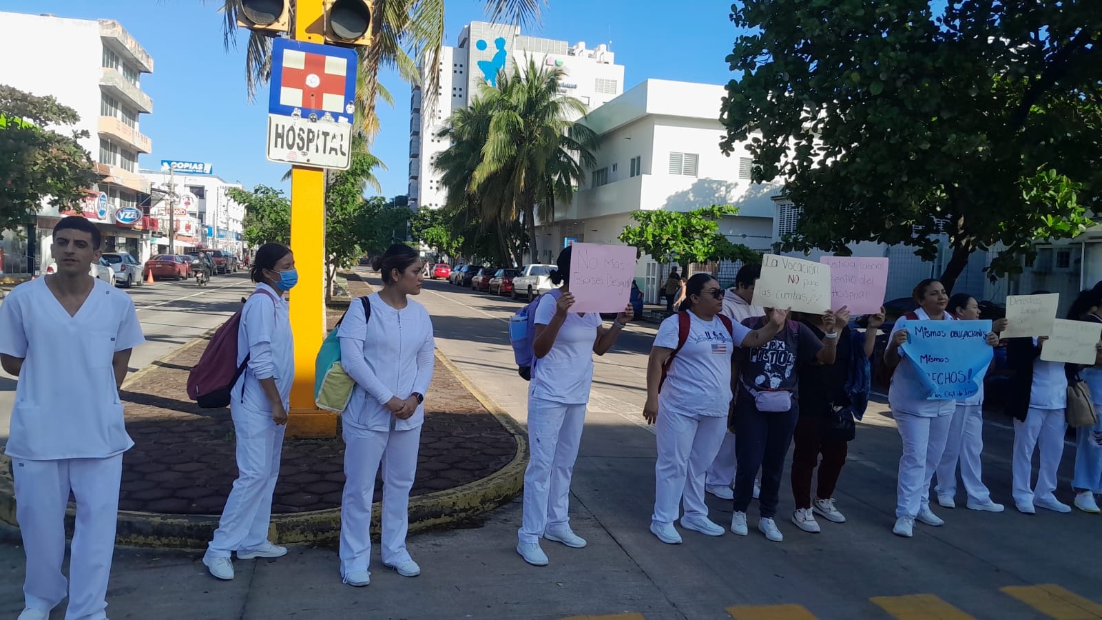 En la manifestación participan trabajadores de hospitales como el 20 de Noviembre, el Hospital Infantil, el de Boca del Río y otras unidades, quienes también reclaman la falta de uniformes, beneficio que, afirmaron, sí fue otorgado a personal de otros esquemas laborales.