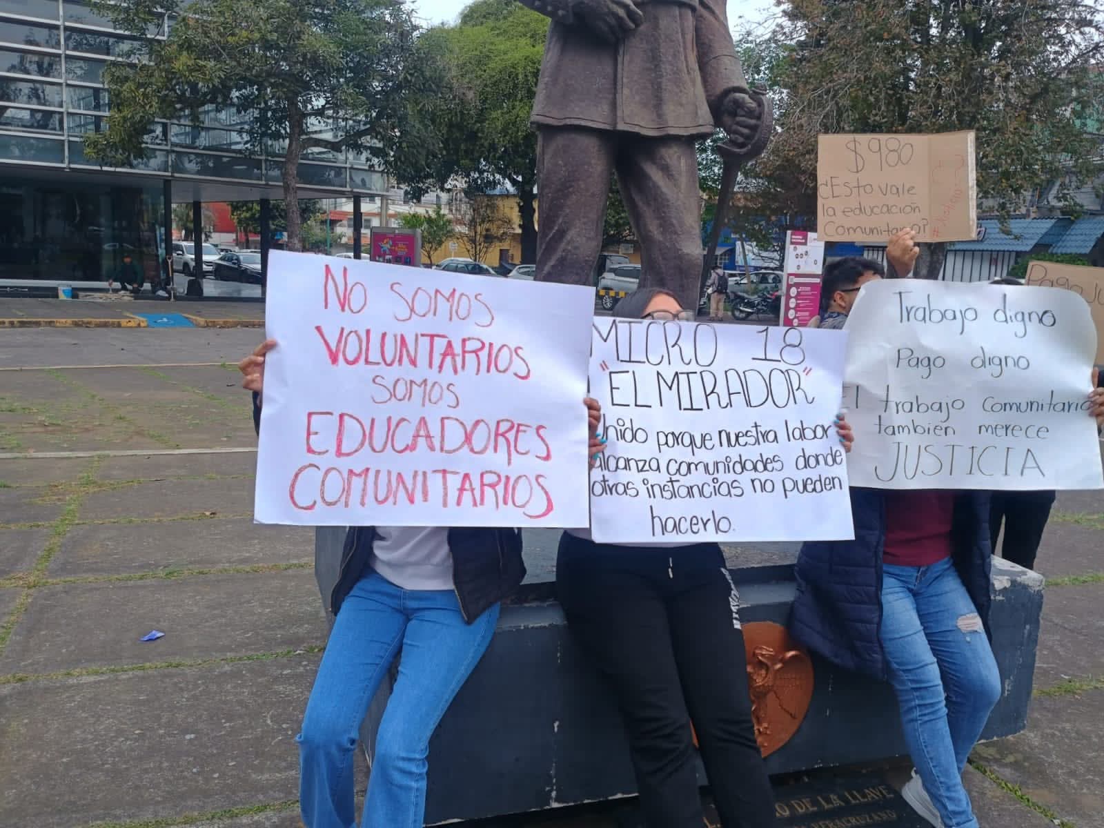 Xalapa.- Educadores comunitarios del Consejo Nacional de Fomento Educativo (CONAFE) protestaron este lunes en Xalapa para exigir el pago del bono navideño que les fue ofrecido desde diciembre y que no han recibido, tras los recortes al presupuesto federal.