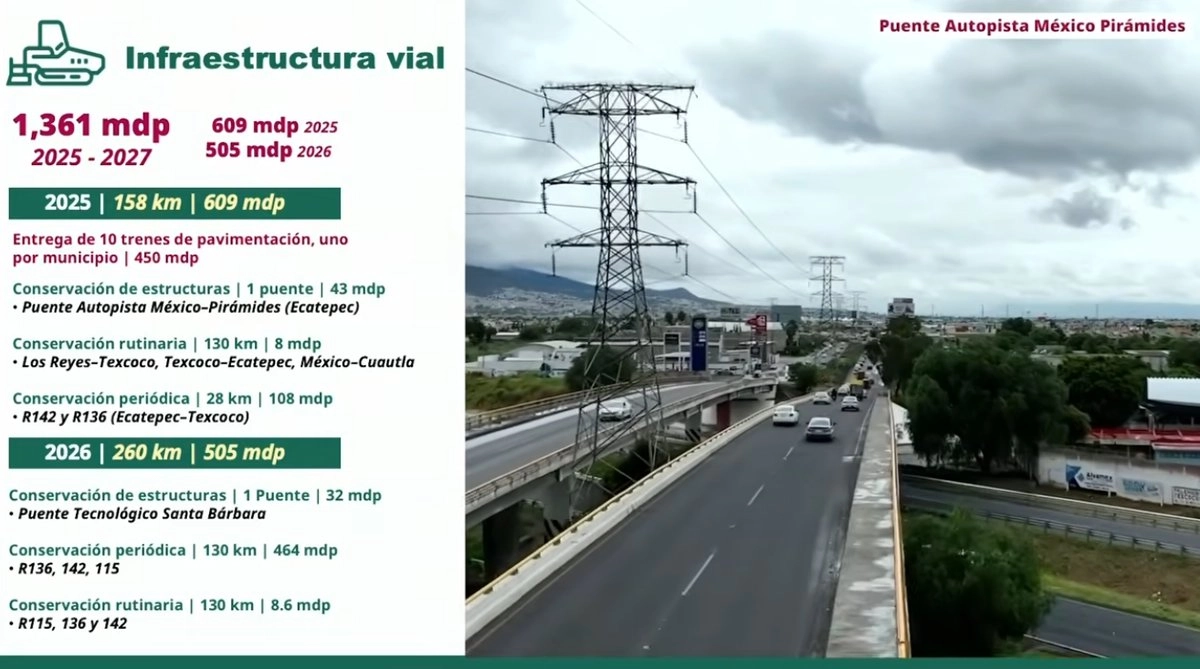 Por otro lado, con una inversión de 5 mil 300 millones de pesos (de los cuales ya se invirtieron 317 millones de pesos en 2025), se ampliarán y modernizarán puentes en esa región de la entidad. Puntualizó que en este año se iniciarán 19 puentes.