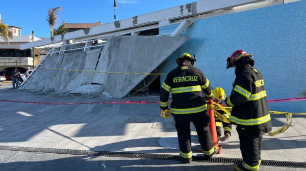 Jesús Utrilla / NV Noticias Una estructura del recién construido mercado de artesanías del puerto de Veracruz colapsó la tarde de este sábado, sin...