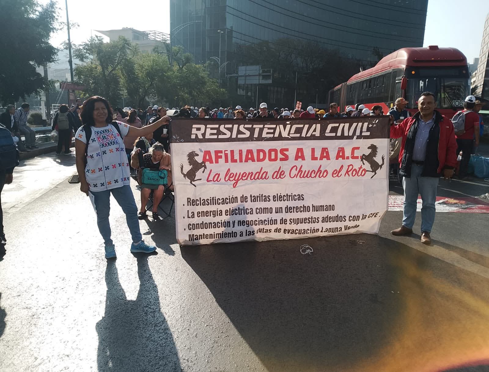 Xalapa.- Integrantes de la organización “Chucho el Roto” participaron este lunes en una jornada de protesta en la Ciudad de México para demandar la reclasificación de las tarifas de energía eléctrica en Veracruz y otras entidades, así como el fin del presunto hostigamiento por parte de la Comisión Federal de Electricidad (CFE).