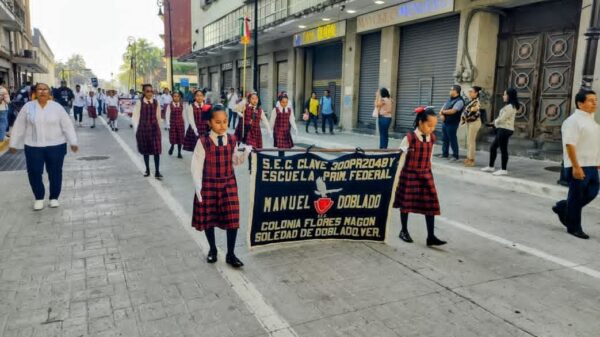 Jesús Utrilla / NV Noticias Escoltas integradas por estudiantes de distintos municipios desfilaron sobre la avenida Independencia, en el centro histórico del puerto de...