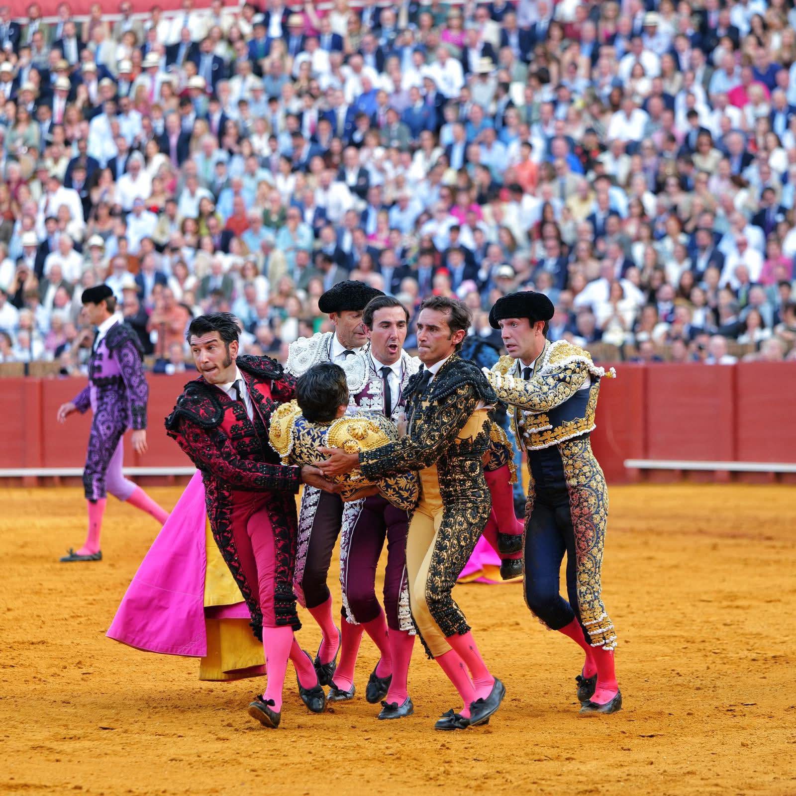 El torero Morante de la Puebla sufr1ó una corn4da considerada muy grave este 20 de abril de en la Plaza de Toros de la Maestranza de Sevilla, durante la faena con el toro.