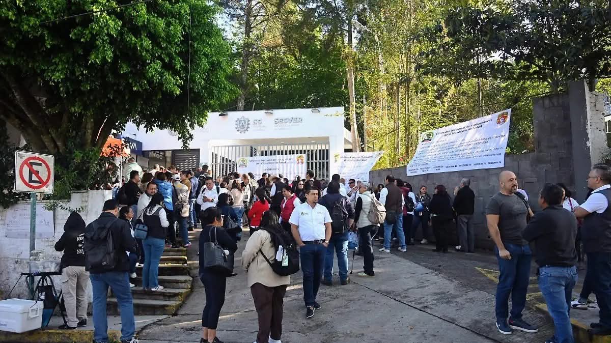Desde primeras horas, personal sindicalizado se concentró en hospitales, centros de salud y oficinas administrativas, incluida la sede central en el cerro de Macuiltépetl, en Xalapa, donde colocaron pancartas para visibilizar sus demandas.