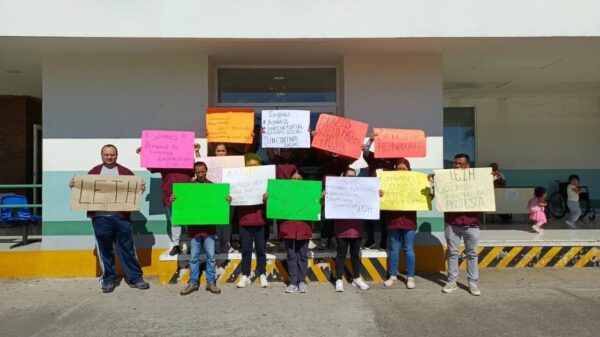 Sam Ojeda / NV Noticias Xalapa.- Trabajadores de la empresa LEIH que prestan servicios en el Centro de Alta Especialidad “Doctor Rafael Lucio” bloquearon...