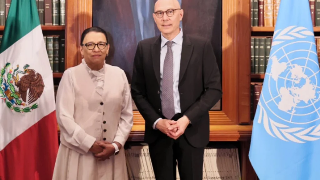 Tras el encuentro que sostuvo con el Alto Comisionado de las Naciones Unidas para los Derechos Humanos, Volker Türk, la Secretaria de Gobernación, Rosa...