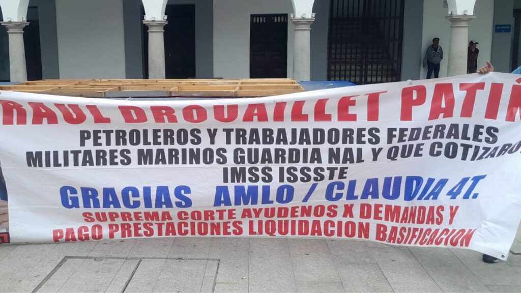 Jesús Utrilla / NV Noticias Trabajadores petroleros de distintos estados del país realizaron una manifestación en el zócalo de Veracruz para exigir a Petróleos...