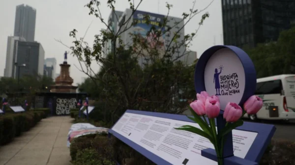Integrantes de diversas colectivas se manifestaron en la Glorieta de las Mujeres que Luchan en Paseo de la Reforma para conmemorar el cuarto aniversario...